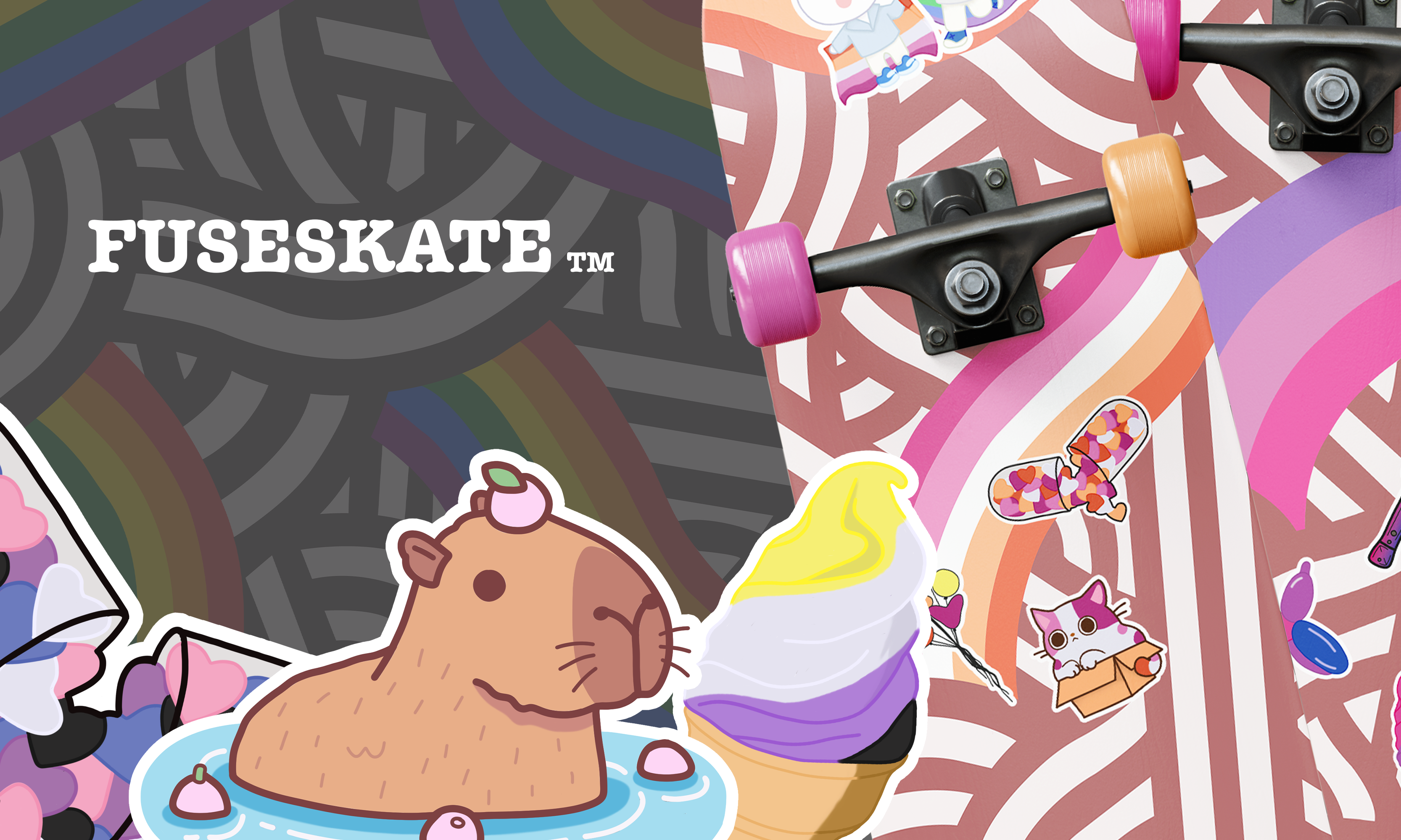 FUSESKATE seeks to create and provide the LGTBQ+ community with sustainable, reliable, and thought-out designs that allow the community to show who they are and how they want to express themselves.