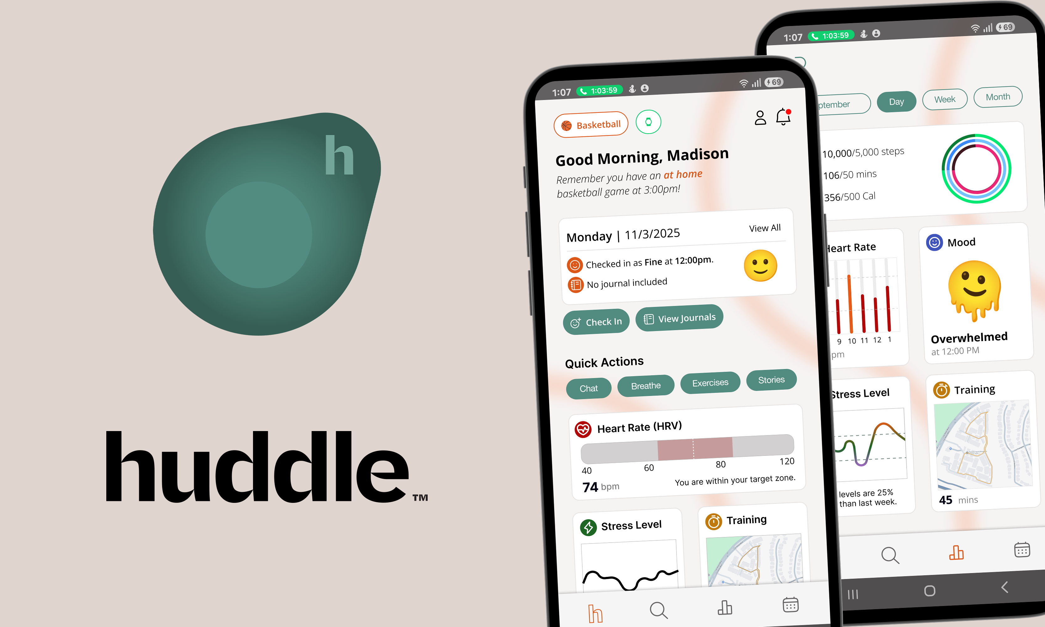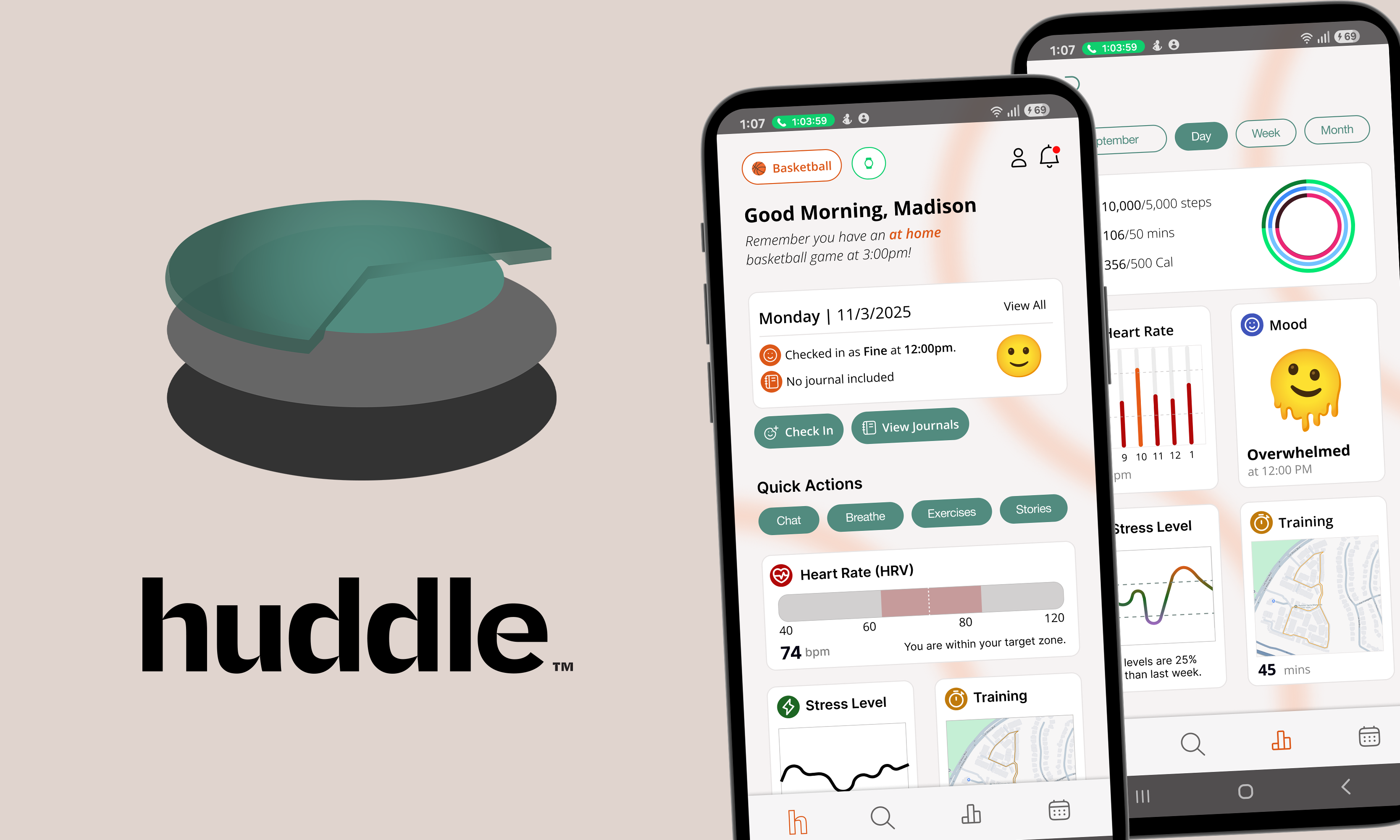 huddle, a supportive digital system through the use of an app and biometric patch to help young athletes with their mental health needs.